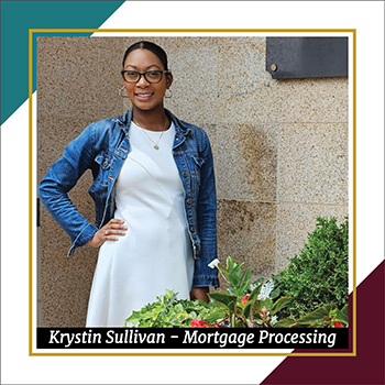 Hired in June 2016, Krystin Sullivan currently works as a real estate loan processor.